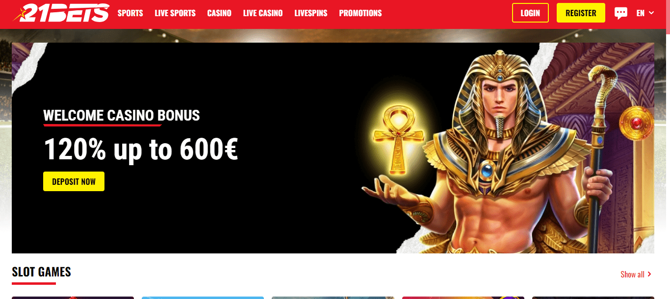Online-Sportwetten und Casino 21 Bets Casino bietet Spiele von Top-Gaming-Unternehmen. Um Ihre Lieblingsspiele unterwegs zu spielen, besuchen Sie die Website des mobilen Casinos oder spielen Sie direkt über Ihren Webbrowser.