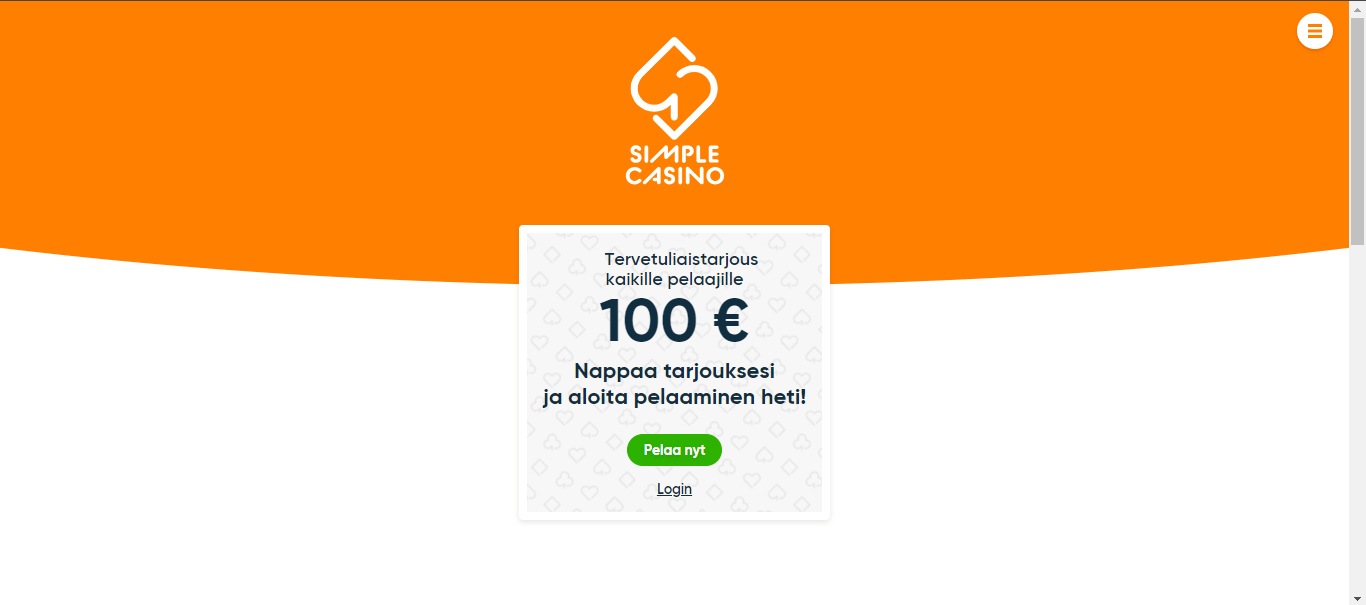 Simple Casino on online-kasino, jonka jäsenet voivat nauttia valikoimasta pelejä, jotka sisältävät videokolikkopelejä, pöytäpelejä, livekasinon ja paljon muuta. Ne ovat Hero Gaming Limitedin omistamia ja ylläpitämiä, ja ne ovat huoleton kasino, joten jäsenten ei tarvitse rekisteröidä tiliä pelatakseen. Kasinolla toimii myös lukuisia menestyneitä ohjelmistotoimittajia, kuten Microgaming, Netent, Play’n GO, Quickspin ja Big Time Gaming. Kasinolle pääsee liikkeellä ollessaan tai pelaajat voivat käyttää sen sijaan mobiilikasinoaan. Simple Casino on Maltan peliviranomaisen lisensoima ja sääntelemä.